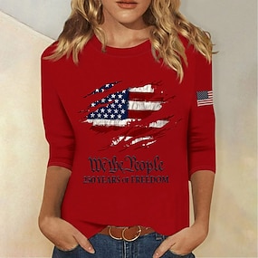 Giorno dell'Indipendenza Anniversary Americano Maglietta Patriottica da Donna Stampa Grafica Bandiera Lettera Elegante Classica Casual Manica Corta Collo Tondo Regolare Top Giornalieri Blu Nero Rosso