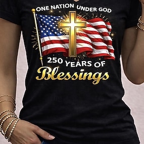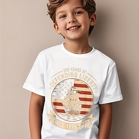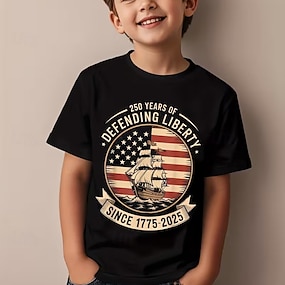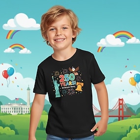 100% Cotone Bambini Ragazzi Nero Bianco Grafico 250° anniversario Bandiera americana per bambini Maglietta Blusa Girocollo Manica Corta All'aperto Abbigliamento Quotidiano Moda Streetwear Designer