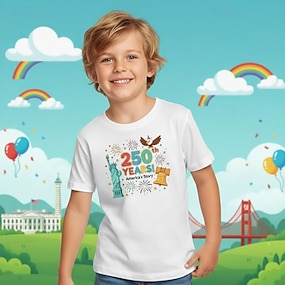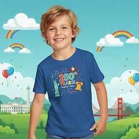 100% Cotone Bambini Ragazzi Blu Nero Bianco Grafico 250° anniversario Maglietta Blusa Girocollo Manica Corta All'aperto Abbigliamento Quotidiano Moda Streetwear Designer Stampa Estate Primavera