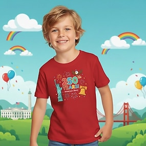 Ragazze 3D Grafico 250° anniversario Maglietta Manica Corta Stampa 3D Estate Primavera Sport Moda Streetwear Bambini 4-12 Anni Girocollo Casuale Quotidiano All'aperto Vestibilità regolare