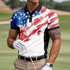 4 luglio 2026 250° Per uomo Bandiera Americana Polo Polo con bottoni Maglia da golf Manica Corta Magliette polo Bavero Moda Casual Quotidiano Festival Stampato Estate Bianco Nero