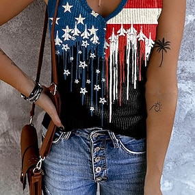 Giorno dell'Indipendenza Americana Per donna Maglietta Stampato Grafico Bandiera Vintage Elegante Classico Manica Corta Scollo a V Top Regolari Quotidiano Blu Estate Primavera