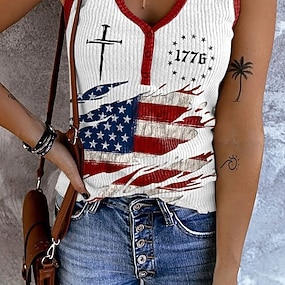 Giorno dell'Indipendenza Americana Per donna Maglietta Stampato Grafico Elegante Classico Casual Manica Corta Scollo a V Top Regolari Quotidiano Uscire Weekend Blu Nero Bianco Rosso Verde Estate
