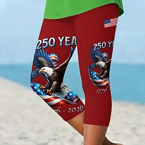 Giorno dell'Indipendenza Pantaloni Capri Leggings Patriottici Donne Vacanza Hawaiano Elegante Capris Vita MediaPantaloniGrafica Astratta Comfort Elasticizzati Vacanza Formale Street Bianco Rosso Slim