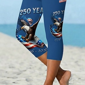 Per donna Pantaloni Leggings Vacanza Streetwear Essenziale Lunghezza intera Vita AltaPantsGiorno dell'indipendenza americana Grafico Bandiera Americana Elastico in vita Stampato Comodit