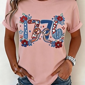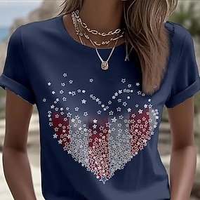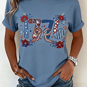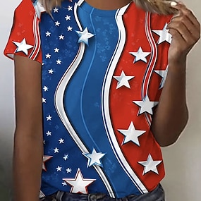 Giorno dell'Indipendenza Americana Per donna Maglietta Stampato Grafico Elegante Classico Casual Manica Corta Girocollo Top Regolari Quotidiano Sportivo Uscire Blu Rosso Estate Primavera