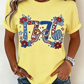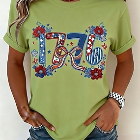 Giorno dell'Indipendenza Americana Per donna Maglietta Stampato Grafico Elegante Classico Casual Manica Corta Girocollo Top Regolari Quotidiano Uscire Weekend Blu Nero Bianco Rosso Verde Estate