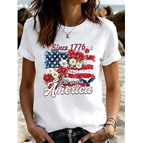 Giorno dell'Indipendenza Americana Per donna Maglietta Stampato Grafico Lettera Bandiera Americana Elegante Classico Casual Manica Corta Girocollo Top Regolari Quotidiano Bianco Estate Primavera