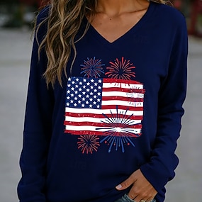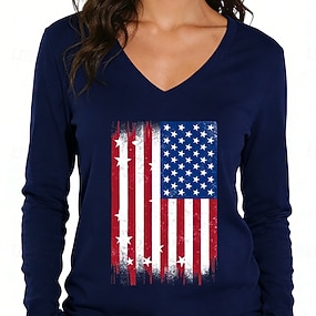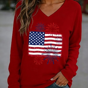 Giorno dell'Indipendenza Americana Per donna Maglietta Stampato Grafico Bandiera Americana Elegante Classico Casual Manica Lunga Scollo a V Top Regolari Quotidiano Sportivo Uscire Blu Rosso Grigio
