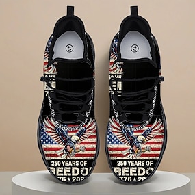 Sneakers patriottiche da uomo con bandiera americana per il 250° anniversario degli Stati Uniti design grafico audace leggere comode calzature per celebrazioni del Giorno dell'Indipendenza