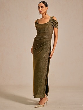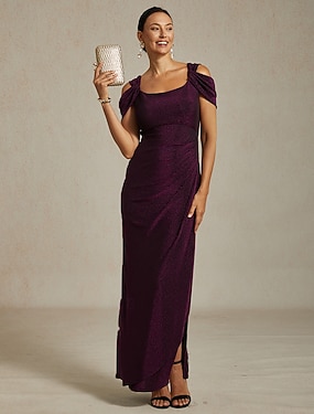 Per donna Abito Lungo Maxi Abito Vestito da Festa Attillato Elegante Club Feste Compleanno Volant Spalle scoperte Vestibilità regolare Semplice Senza Maniche Spalline Marrone rossastro