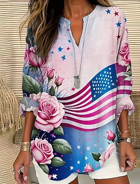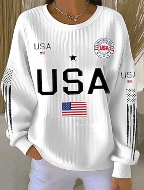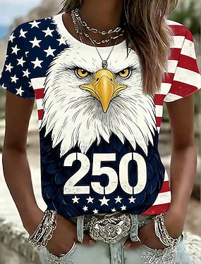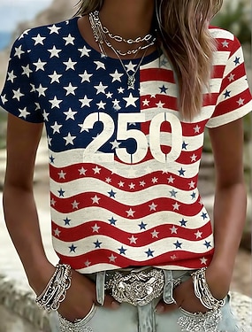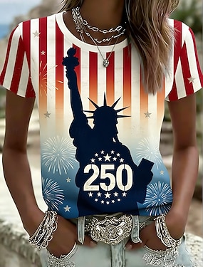 Maglietta Donna Patriottica Americana Festa dell'Indipendenza Stampa Grafica Fiori Lettera Elegante Classica Casual Maniche Corte Girocollo Regolari Tops Quotidiani Nero Bianco Rosso Estate Primavera