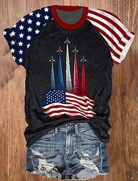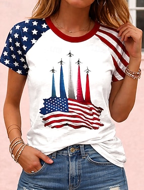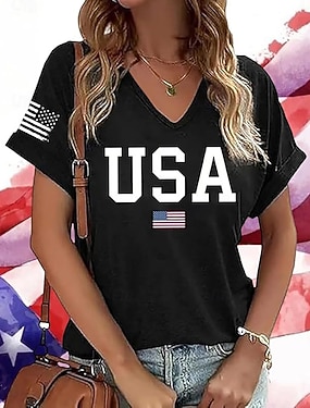 Giorno dell'Indipendenza Anniversary Americano Maglietta Patriottica da Donna Stampa Grafica Bandiera Lettera Elegante Classica Casual Manica Corta Collo Tondo Top Lunghi Giornalieri Blu Nero Bianco