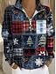Per donna Felpa Pullover Pupazzo di neve Albero di Natale Natale Casual Manica Lunga Mezza zip Top Regolari Abbigliamento Quotidiano Casuale Ferie Patchwork Blu Rosso Blu scuro Autunno Inverno