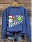 Natale Per donna Maglietta Grafico Albero di Natale Vintage Moda Elegante Manica Lunga Girocollo Top Regolari Quotidiano Weekend Stampato Blu Rosso Viola Verde Autunno Inverno