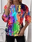 T-shirt da donna con maniche lunghe girocollo maniche lunghe tunica moderna casual stampa geometrica tops regolari quotidiani vino marrone chiaro blu arancione marrone autunno inverno pre-autunno