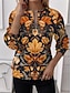 Blusa da donna scollatura a V manica a sbuffo arricciata tops floreale grafica bohemia vintage quotidiana manica 3/4 tops regolari stampa quotidiana indumenti per vacanze rosa rossa blu azzurro