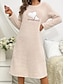Per donna Camicia da Notte Casual Comfort Lettera Ricamato Maglietta Casa Quotidiano Manica Lunga Girocollo Rosa Beige Autunno Inverno Vestibilità regolare