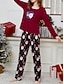 Per donna Set Pigiama Casual Comfort Grafico Babbo Natale Fiocco di neve Elastico in vita Maglietta Pantalone Natale Vacanza Casa Manica Lunga Girocollo Rosa Vino Rosso Verde Primavera Autunno Inverno