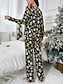 pigiama natalizio da donna, abbigliamento da casa, set pigiama caldo, moda, sport, grafico, fiocco di neve, abbottonato, natale, vacanza, casa, manica lunga, revers, bianco, rosso, verde, primavera,