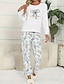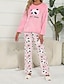 pigiama natalizio da donna, abbigliamento da casa, intimo termico, set pigiama, caldo, attivo, moda, grafico, cartone animato, pantaloni, natale, casa, festa, manica lunga, girocollo, rosa, grigio,