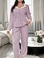 Per donna Pigiama Abbigliamento da Casa Casual Dolce Colore Puro Pizzo Elastico in vita Pantalone Vacanza Casa Quotidiano Manica Lunga Colletto a Camicia Viola Autunno Inverno Vestibilità comoda