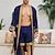 Per uomo Giacca leggera Giacca da camicia Formale Interni Tasche Primavera & Autunno Strisce Vintage Di tendenza Colletto Standard Blu marino Giacca