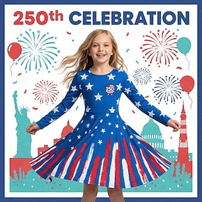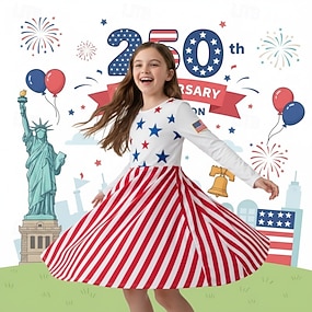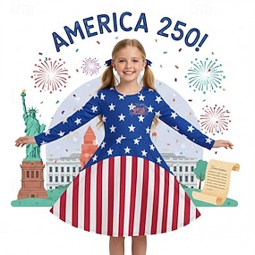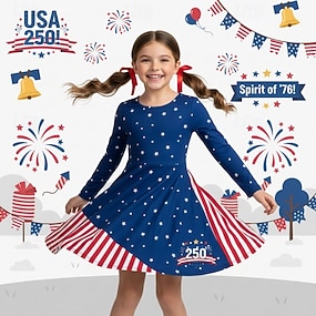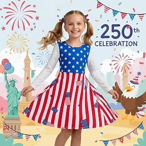 ragazze' 3D Grafico Bandiera Abito Manica Lunga Stampa 3D Primavera Autunno Quotidiano Vacanza Feste Casual Principessa Bello Bambini 4-12 Anni Vestito Casual Abito a trapezio Lunghezza al ginocchio