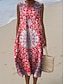 Abito Midi da Donna in Lino Vestito da Sole Vestito a Fascia Abito A Linea Vacanza Casual Boho Uscita Spiaggia Vestibilità Larga Grafica Floreale Geometrica Senza Maniche Collo Giro Rosa Rosso Blu