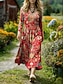 Per donna Abito Midi Vestito T-Shirt Abito a trapezio Vacanza Casual Boho Quotidiano Ferie Data Vestibilità regolare Floreale Grafico Geometrico Manica Lunga Scollo a V Blu Marrone Scuro Bianco Rosso