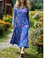 Per donna Abito maxi Tubino Abito a trapezio Casual Boho Spiaggia Ospite di nozze Vestibilità regolare Floreale Grafico Manica Lunga Girocollo Blu Primavera Autunno Inverno