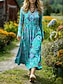 Abito Maxi Donna Vintage Bohemien A Line Abito Collo a Barca Maniche Lunghe Casual Giornaliero Vestibilità Regolare Grafica Paisley Blu Verde Scuro Verde Primavera Autunno Inverno