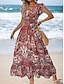 Per donna Abito maxi Vestito Estivo Abito a trapezio Vacanza Casual Boho All'aperto Uscire Vestibilità regolare Grafico Paisley Manica Corta Scollo a V Rosso Verde Estate Primavera