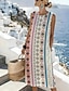 Per donna Abito Midi Abito a Tubino Vestito Estivo Abito a trapezio Vacanza Casual Boho Spiaggia Uscire Vestibilità regolare Grafico Geometrico Senza Maniche Girocollo Bianco Estate Primavera