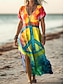 Per donna Abito maxi Abito a trapezio Casual Quotidiano Spiaggia Vestibilità comoda Geometrico Manica Corta Scollo a V Blu Marrone Scuro Verde chiaro Rosso Estate Primavera