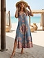 Per donna Abito maxi Abito a Tubino Vestito Estivo Vestito T-Shirt Abito Estivo Vacanza Casual Boho Spiaggia Feste Ferie Vestibilità regolare Etnico Manica Corta Scollo a V Blu Estate Primavera