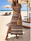 Abito Maxi Femminile Abito Casual Abito Giornaliero Stile Lascio Geometrico Manica Corta Collo A Giro Marrone Estate