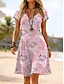 Per donna Abito maxi Vestito Casual Abito a trapezio Elegante Casual Quotidiano Vacanza Vestibilità regolare Floreale Manica Corta Scollo a V Rosa chiaro Viola chiaro Viola Beige Primavera Autunno