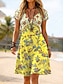 Per donna Abito al ginocchio Vestito Estivo Vestito T-Shirt Abito a trapezio Vacanza Casual Boho Spiaggia Vestibilità regolare Floreale Grafico Manica Corta Scollo a V Blu Giallo Rosa Verde Estate