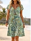 Per donna Abito maxi Vestito T-Shirt Abito a trapezio Abito Estivo Vacanza Casual Spiaggia Uscire Vestibilità regolare Grafico Paisley Manica Corta Girocollo Verde Estate Primavera