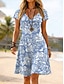 abito midi da donna blu e bianco fiori vacanza abito a trapezio vacanza casual spiaggia appuntamento vestibilità regolare grafica geometrica manica corta girocollo blu rosso viola verde estate primavera