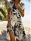 Per donna Vestito longuette Abito casual Abito a T shirt Tropicale Moda Informale Da mare Giornaliero Standard Pop art Manica corta A V Verde Estate