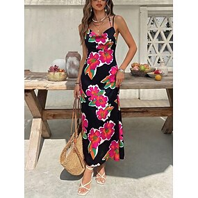 Per donna Abito maxi Tubino Abito Sottoveste Casual All'aperto Uscire Vestibilità aderente Floreale Senza Maniche Spalline sottili Nero Estate Primavera