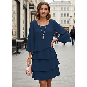 Per donna Mini Abito Abito da Cocktail Abito da invitata a nozze Vestito in Chiffon Abito a Strati Elegante Festa serale Data Uscire Vestibilità regolare Colore Puro Manica Corta Girocollo Nero