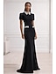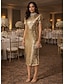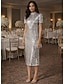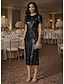 Tubino Colonna Lunghezza Tè Abiti da Cocktail Abiti da festa Elegante Scintillante Abbellito Manica Corta Collo Alto Festa serale Matrimonio Con Paillettes Tessuto Elasticizzato con Cristalli