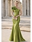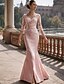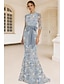 Sirena Tromba Lunghezza al pavimento Abito da invitata a nozze Abito Formale Abito da sera Abito da cerimonia per signora Manica 3/4 Scollo Tondo Elegante Festa Formale Serata Formale Raso Pizzo con