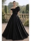 Linea ad A Lunghezza al pavimento Abito da Sera Da principessa Abito formale Elegante Setoso Manica Corta Senza Spalle Matrimonio Formale Tasca Raso Shiena scoperta con Fiore ricamato Pieghe