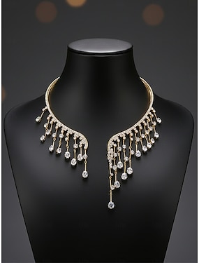 collana girocollo con frange in strass dorati da donna: gioielli di lusso per cocktail party, eventi serali e occasioni formali