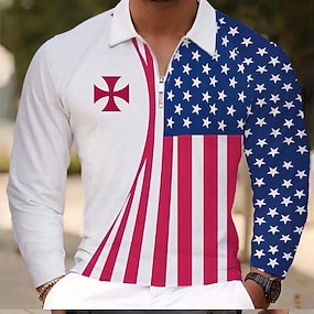 4 luglio 2026 250° Per uomo Bandiera Americana Aquila Polo Manica Lunga Magliette polo Bavero Casual All'aperto Athleisure Abbigliamento quotidiano Stampa 3D Bottoni Primavera Autunno Inverno Blu