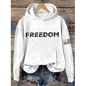 Felpa con cappuccio patriottica per donne del Giorno dell'Indipendenza grafica lettera casual maniche lunghe colletto con cappuccio top regolari abbigliamento quotidiano sport blu nero bianco rosso
